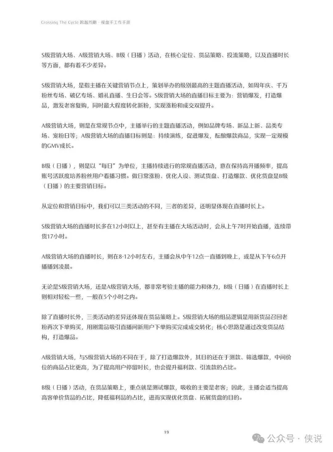 手册核心亮点在于“STEPS品牌经营方法论”与“STAGE直播运营方法论”的双轨支撑:前者助力品牌快速落地增长,后者聚焦单场直播GMV突破。通过账号诊断(四大数据维度)、主播成长周期规划(S-A-B营销活动模型)、营销大场策划执行(7大准备策略+5大执行保障)、日播穿插策略四大核心模块,构建了完整的操盘体系。
