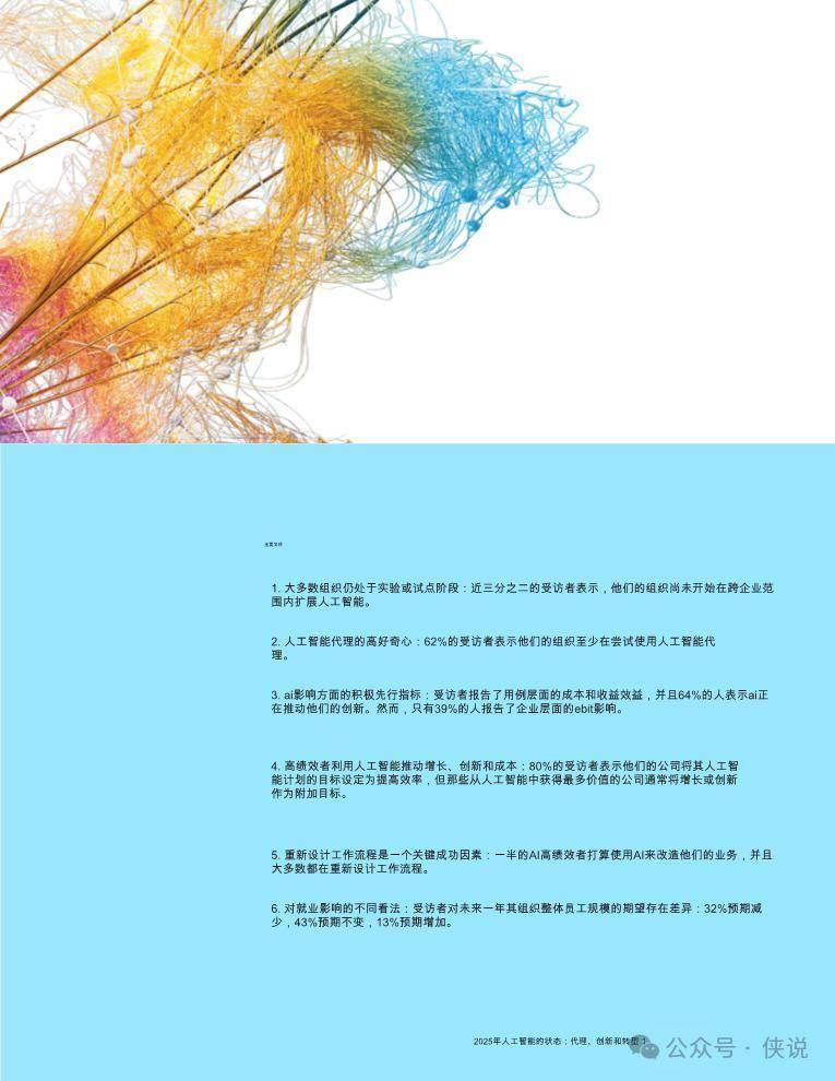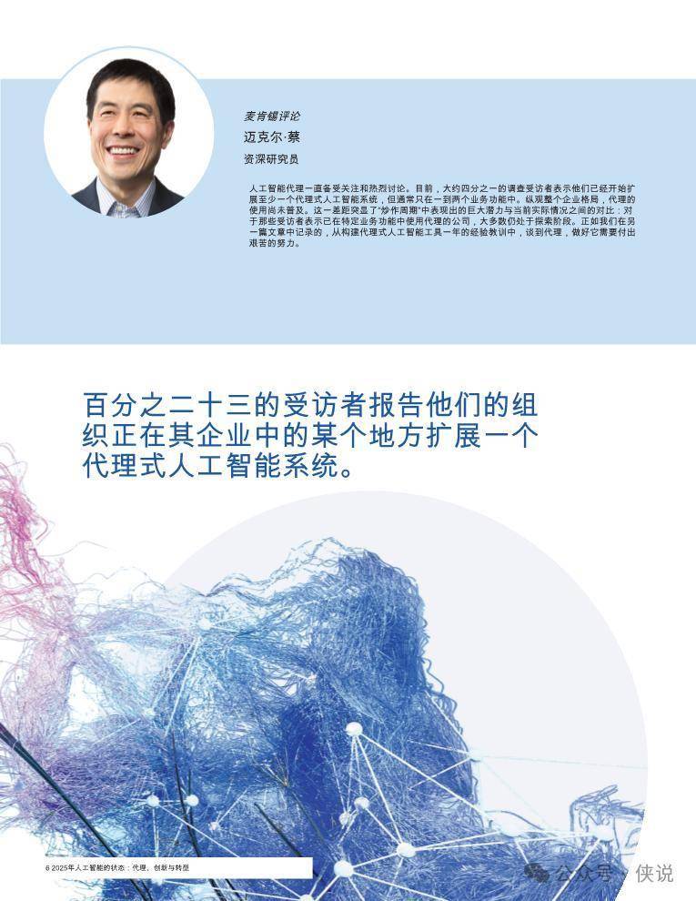 值得关注的是,AI代理的探索热度高涨,62%的受访者所在组织已开展相关尝试,其中23%已在部分业务功能中扩展应用,科技、媒体和电信及医疗保健行业的应用最为广泛。