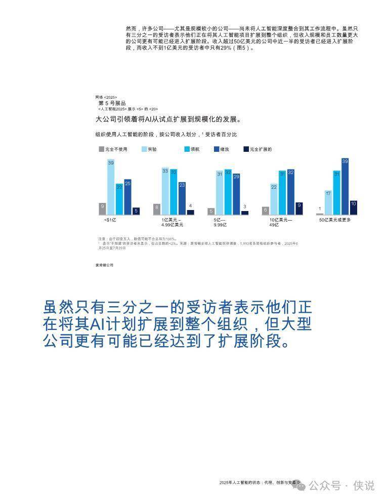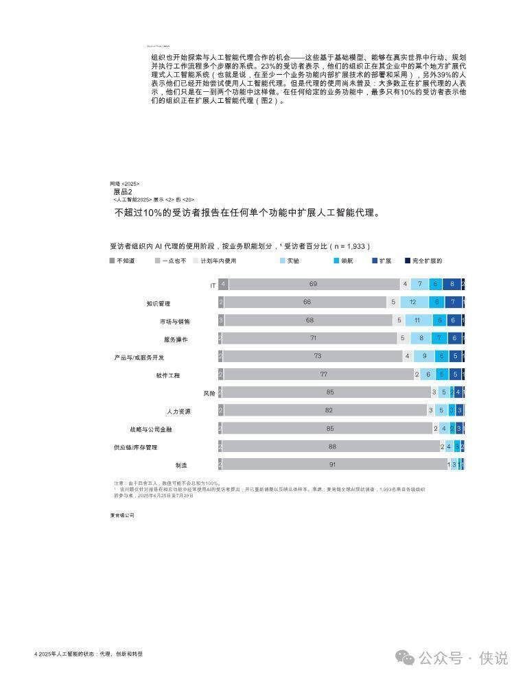 然而,行业发展呈现不均衡态势。近三分之二的组织尚未在跨企业范围内扩展AI应用,仍处于实验或试点阶段,未能将AI深度嵌入工作流程以实现企业级显著效益。