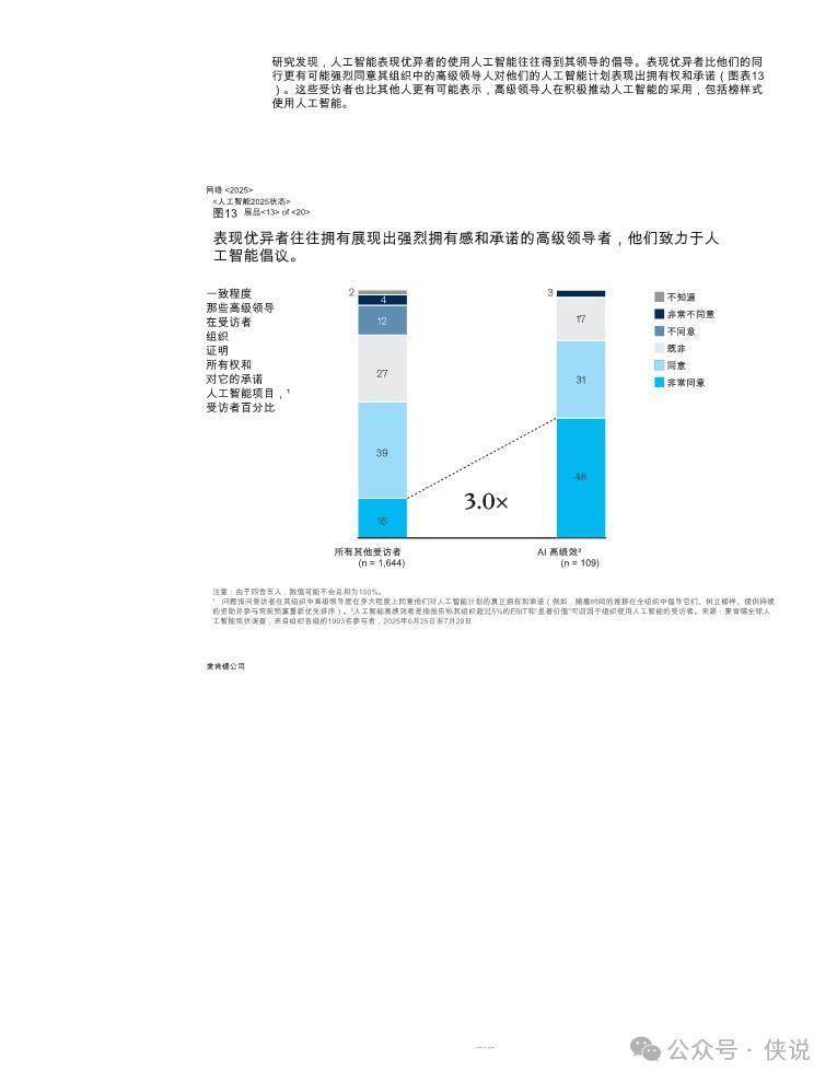 高绩效组织的实践表明,将增长和创新纳入AI目标、重新设计工作流程及强化领导层支持,是实现价值突破的关键。同时,AI对就业的影响预期分化,32%受访者预计员工规模减少,43%认为保持不变,13%预期增加,而相关人才招聘需求持续旺盛。