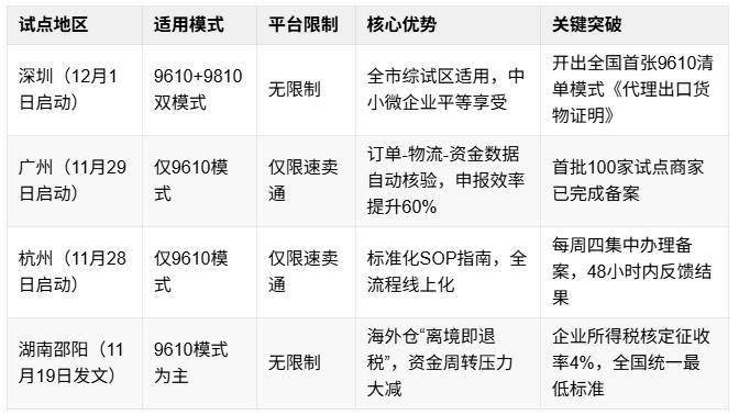 直到今年11月,深圳率先撕开突破口:全国首张9610清单模式《代理出口货物证明》开出,杭州联合速卖通征集100家试点商家,广州、湖南同步跟进……政策不再是“狼来了”,而是真金白银的合规通道。
