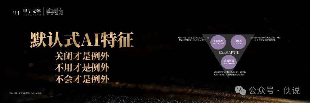 过去一年,人工智能产业呈现“轰然成势、万象归一”的发展特征,能量突破临界值的同时,行业秩序逐步确立。这一阶段,AI正式迈入“默认式”新阶段——默认式AI无需用户主动选择或感知,以默认存在、默认开启的形态融入生活,“关闭才是例外、不用才是例外、不会才是例外”成为核心特征,标志着智能从可选功能变为常态,走向“日用而不觉”。