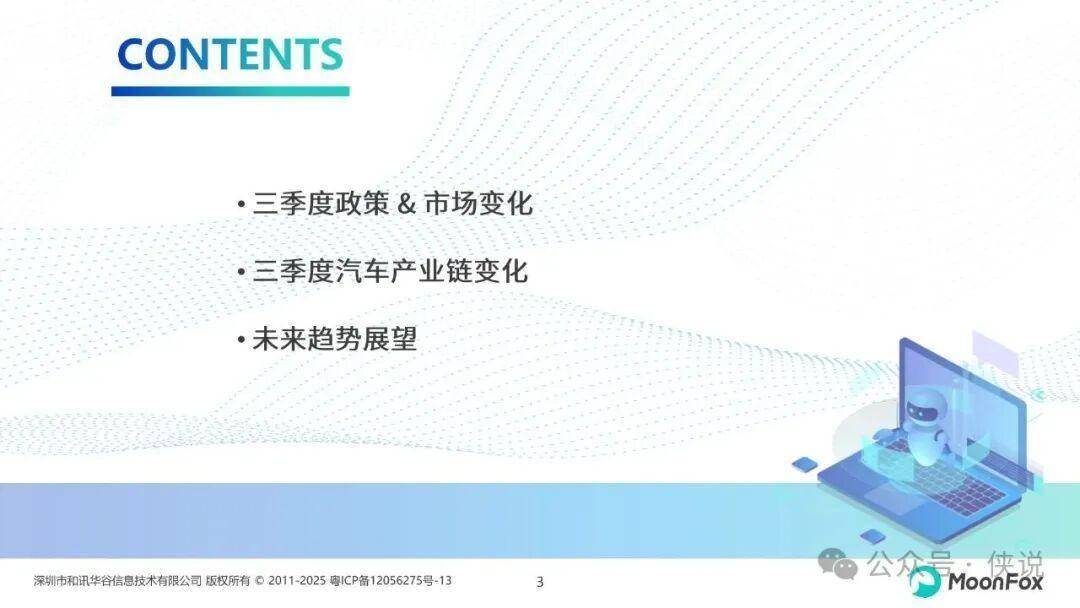 2025年三季度,中国汽车产业在政策引导与市场变革中稳步前行,呈现“政策稳增长、市场调结构、产业谋转型”的鲜明特征。工业和信息化部等八部门联合印发《汽车行业稳增长工作方案》,设定全年3230万辆左右销量目标,其中新能源汽车占比约48%,为行业发展划定清晰方向。政策端既通过消费贷款贴息等举措激发市场需求,也以网络乱象专项整治、智能网联汽车安全标准制定等手段规范竞争秩序,推动产业高质量发展。