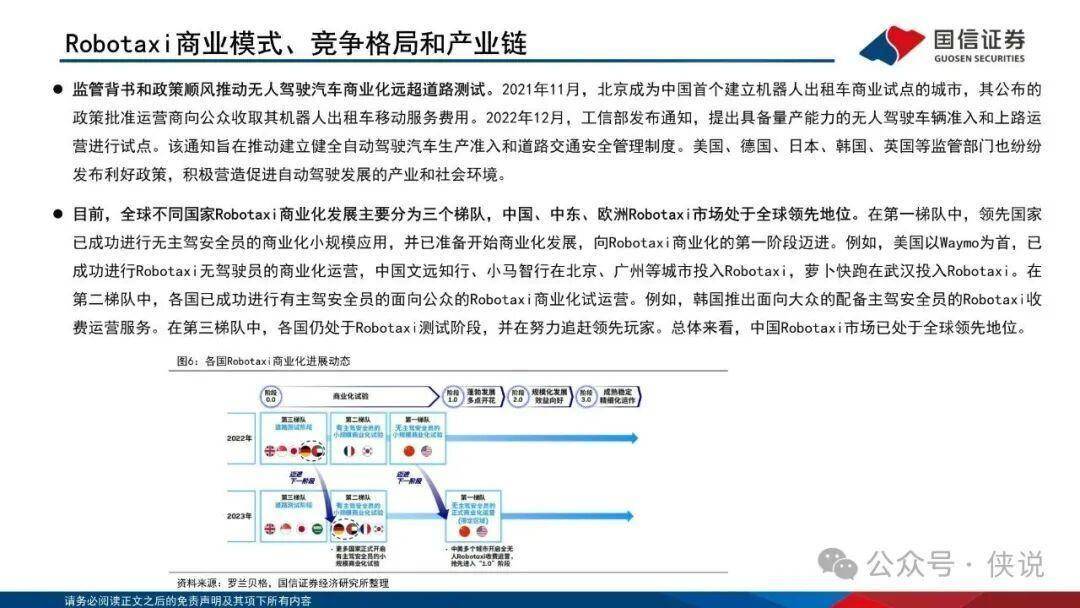 竞争格局上,自主厂商崛起,文远知行、 小马智行、萝卜快跑在Robotaxi领域加速商业化;九识智能、新石器领跑Robovan赛道。