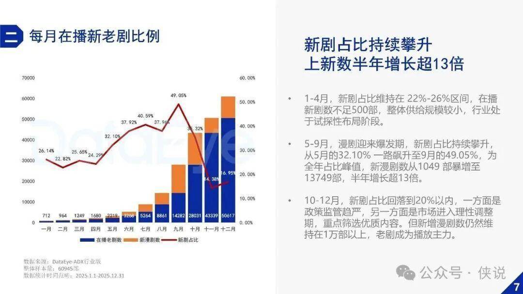 2. 每月在播新老剧比例