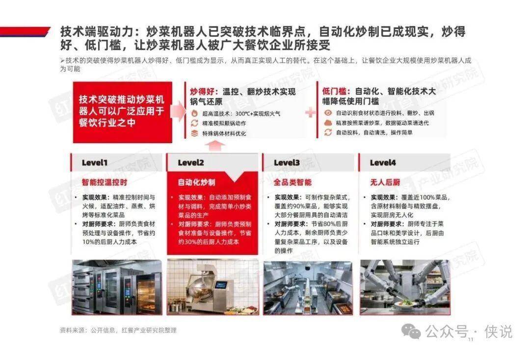 其商业价值已在多场景得到验证,不仅能将后厨人效提升 2~3 倍、坪效提升 10%、能耗下降 20%~30%,还推动厨师角色从执行者转型为研发者,后厨组织架构也向更精简的模式升级。