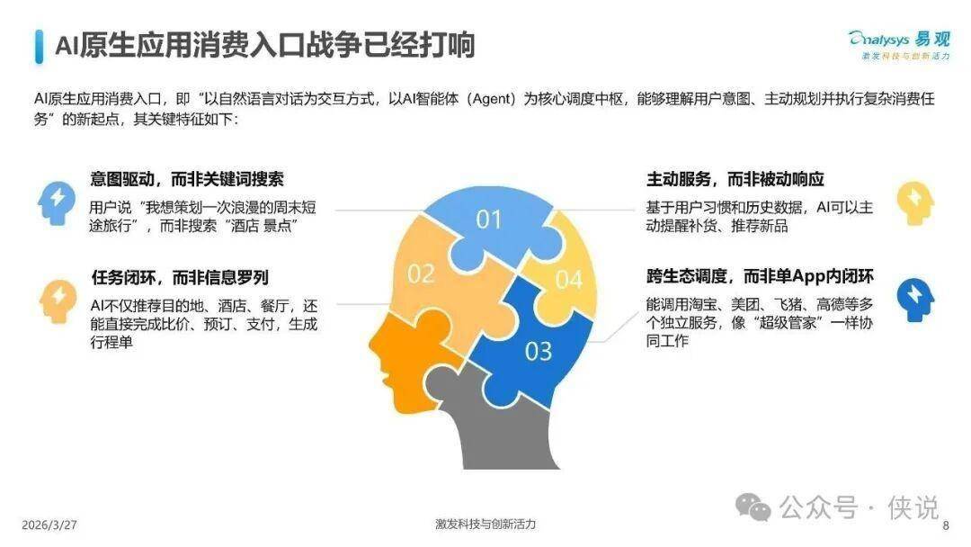 AI原生应用消费入口,即"以自然语言对话为交互方式,以AI智能体(Agent)为核心调度中枢"的新起点,其关键特征包括: