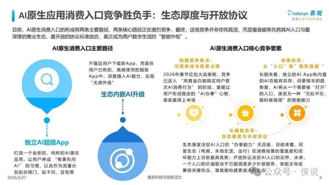 竞争胜负手在于生态厚度与开放协议:生态厚度决定AI入口的"办事能力"天花板,开放协议决定AI入口的边界。